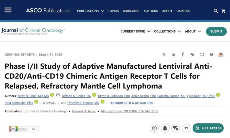 [1]Shah N N,et al.Phase I/II Study of Adaptive Manufactured Lentiviral Anti-CD20/Anti-CD19 Chimeric Antigen Receptor T Cells for Relapsed, Refractory Mantle Cell Lymphoma[J]. Journal of Clinical Oncology, 2025: JCO-24-02158.