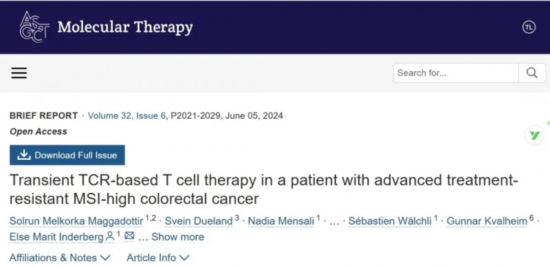 首例mRNA TCR-T疗法破局!多线全失效的MSI-H结直肠癌患者病情稳了