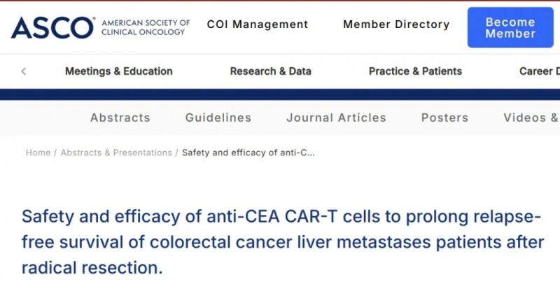 2025年ASCO大会公布了CEA CAR-T细胞治疗结直肠癌肝转移根治术后患者的I期临床试验(NCT05240950)数据。...