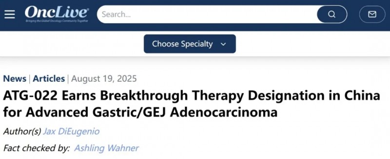 据“Onclive”消息,中国国家药品监督管理局药品审评中心近日授予安腾生物的新型靶向Claudin18.2(CLDN18.2)抗体药物偶联物ATG-022突破性疗法认定,用于既往接受过至少两线治疗的CLDN18.2阳性、HER2阴性、不可切除或转移性胃癌或胃食管交界处(GEJ)腺癌的治疗。...