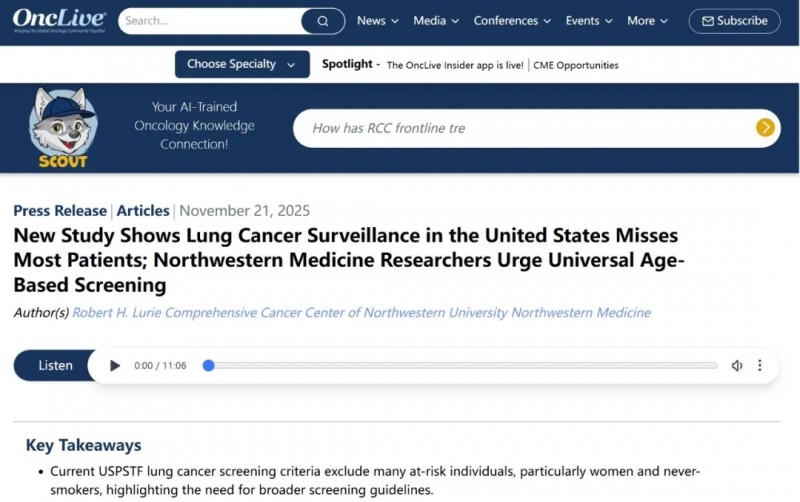 美国肺癌筛查漏诊率极高——仅35%的人群符合美国预防服务工作组(USPSTF)的筛查标准,而被排除的三分之二人群中,女性和非吸烟者占比明显偏高。...
