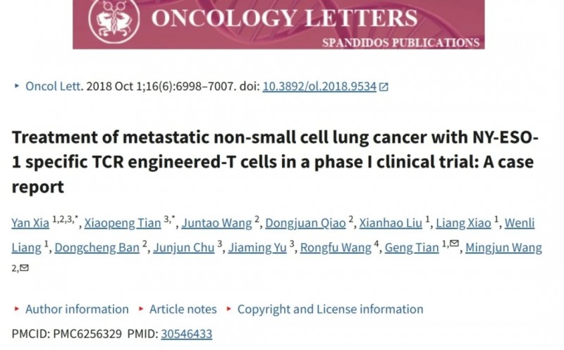 晚期肺癌不再无药可医!NY-ESO-1 TCR-T疗法让多线耐药患者获PR,肿瘤大幅缩小